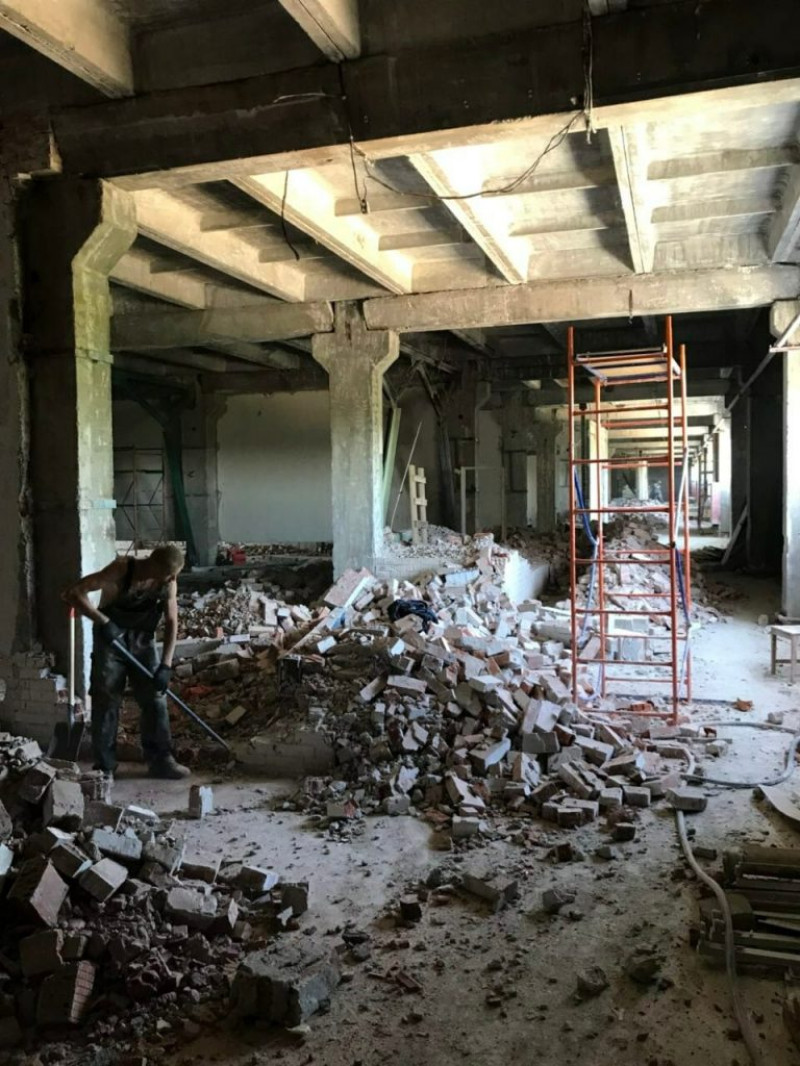 Нам досталось старое здание, где мы всё снесли под ноль и построили заново: пришлось укрепить перекрытия, так как тяжелая немецкая техника могла провалиться и вызвать обрушение здания, заново провести все инженерные системы и канализацию, возвести новые кирпичные стены, сделать с нуля систему вентиляции. В итоге от прошлой постройки остались только каркас здания и фундамент.