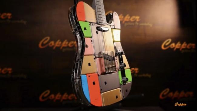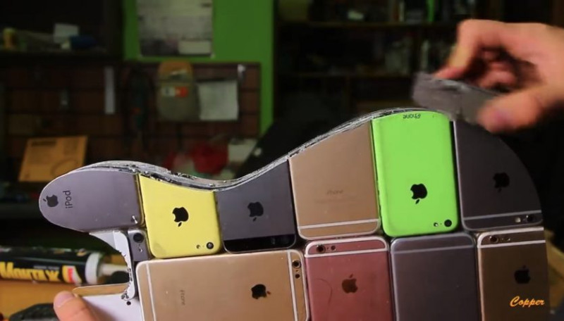 Московский гитарный мастер Артём Майер сделал полноценную гитару из 107 iPhone и iPod Touch. Он вырезал их по форме Fender Telecaster и назвал инструмент iCaster.