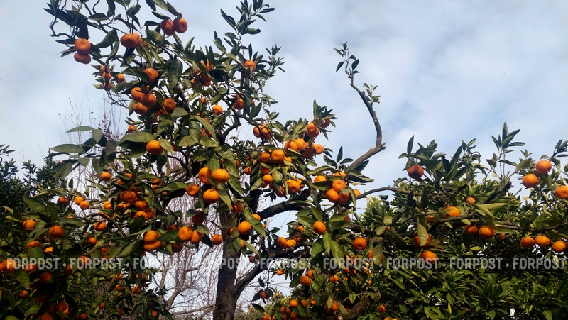 Зимой практически возле каждого частного дома сквозь тёмную листву просвечивают яркими пятнами спелые фрукты. А вдоль дороги, как в Крыму связки ялтинского лука, абхазские хозяйки выносят на продажу пластиковые ведёрки из-под майонеза, заполненные цитрусовыми. Правда, -здесь за килограмм мандаринов просят сто рублей, тогда как на Центральном рынке Сухума — 40-60 рублей.