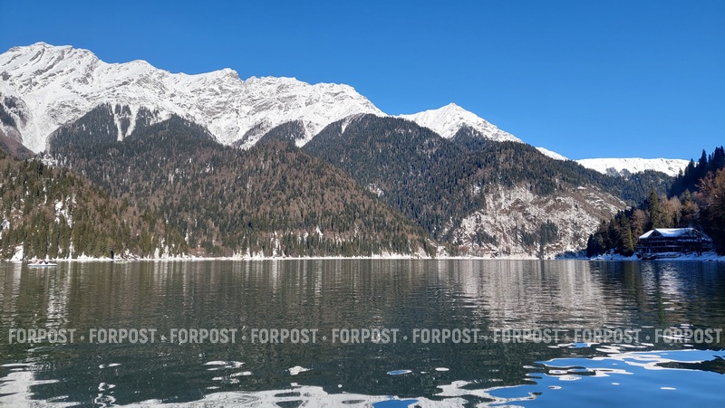 Заснеженные горы вокруг озера Рица