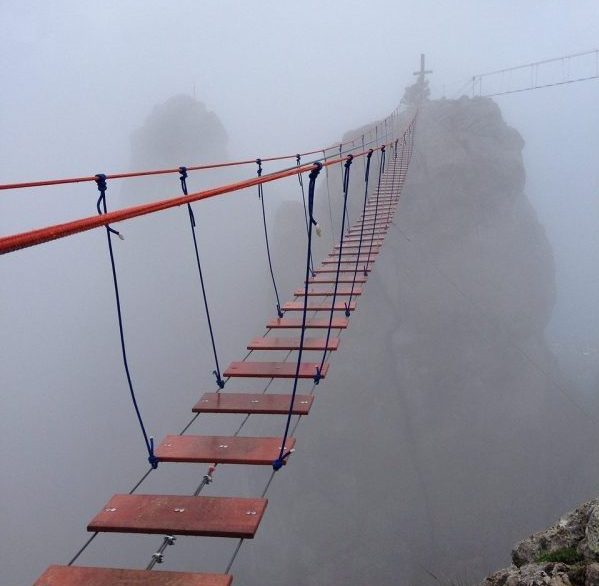 Если вы доберётесь до верха по канатной дороге, то здесь вам предложат конные прогулки, прокат квадроциклов, полеты со свистом на зиплайне (троллее), экскурсию к зубцам Ай-Петри, а для самых отважных — прогулку по навесному трапу над пропастью.
