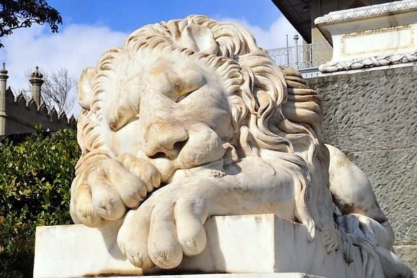 Львы словно охраняют покой дворца. Первая пара застыла в безмятежном покое и лежит у основания лестницы, вторая, как будто проснувшись, настороженно вслушивается в тишину, а третья готова броситься в бой, заметив чужака. Эти величественные львы являются украшением замка и любимым объектом для селфи.