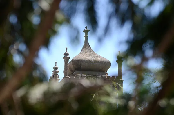 Архитектурный стиль замка удачно соединяет в себе восточный и английский. Башни с бойницами на стенах напоминают средневековые замки. Шпили на плоских крышах похожи на минареты.
