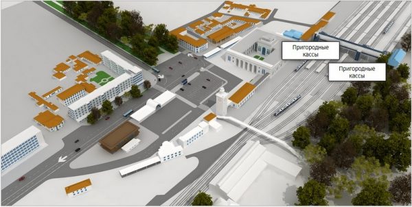 Кстати, от ж/д вокзала ходят электрички на которых тоже можно добраться до необходимой вам станции. На схеме ж/д вокзала указаны пригородные кассы на электропоезда, а слева под коричневой крышей находятся автобусные кассы. Посмотреть расписание электричек.