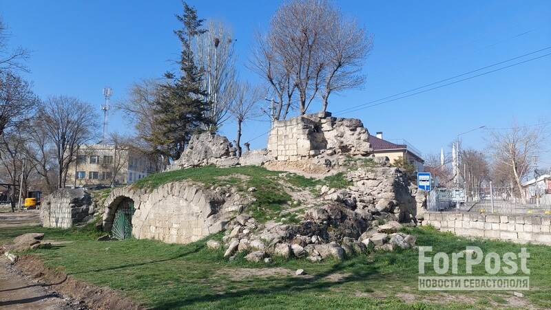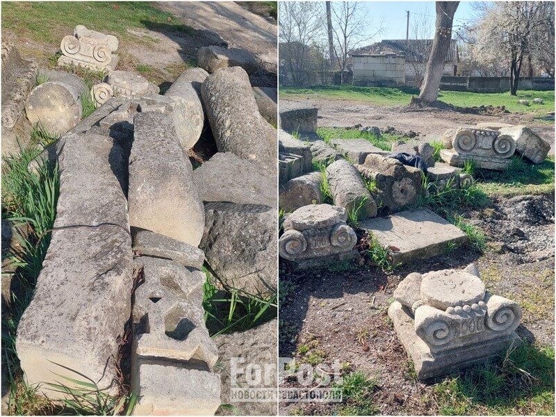 По соседству с Таш-Ханом на поляне сквера лежат обломки явно древних колонн и даже гробниц. Частью чего является это культурное наследие Крыма неизвестно. Никаких аннотационных табличек рядом не установлено. Эти предположительно ценные археологические фрагменты никак не охраняются: во всяком случае вандалы имеют к ним свободный доступ, оставляя свои “автографы”.