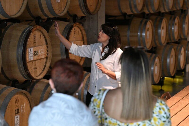 Пассажиры “Виноградного экспресса” на одной из виноделен.