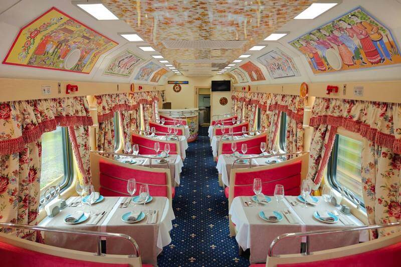 К услугам пассажиров будут доступны вагоны-рестораны, оформленные по эксклюзивному дизайну.
