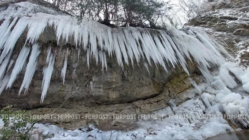 Действительно, необычное для Крыма зрелище завораживает. Хотя не стоит забывать о правилах безопасности и к ледяным наростам приближаться с осторожностью — «сталактиты» могут обрушиться в любой момент.