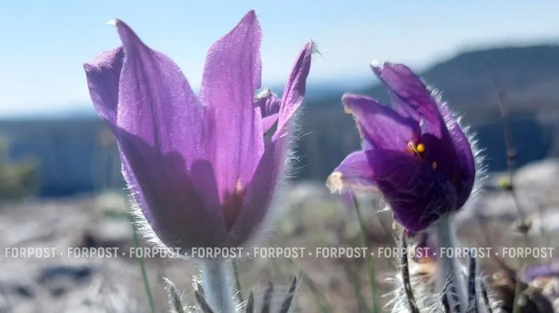 Несмотря на ночные заморозки, весна уверено шагает по Крымскому полуострову, и под лучами солнца в горах распускаются всё новые виды первоцветов. К середине апреля наступил черёд цветения прострела крымского, или сон-травы. Плато пещерного города Кыз-Кермен является одним из мест, где можно полюбоваться пушистыми лиловыми бутонами.
