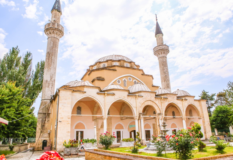 От текие пройдите к главной мечети Евпатории — Джума-Джами (45.195906, 33.377357). Культовое сооружение мусульман было построено в XVI веке по проекту знаменитого архитектора Ходжи Синана. У мечети два высоких минарета и большой купол. Это одна из крупнейших мечетей Крыма.