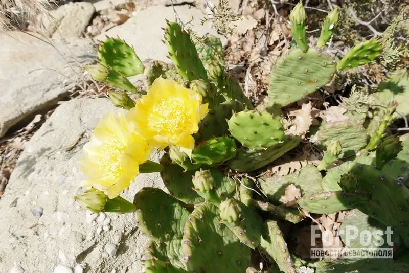 Вечнозелёные колючки не являются аборигенами Крыма. Принято считать, что эти растения появились на полуострове во время Крымской войны, в середине XIX века. Итальянские солдаты, по традиции, высаживали опунции на могилах своих павших товарищей. С тех пор кактусы распространялись из Севастополя, где происходили основные боевые действия, по всему региону.