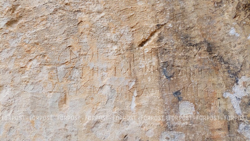 Греческие граффити на древних руинах в Джурга-Бахчи